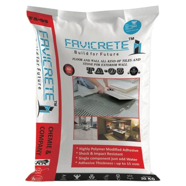 A Multipurpose high fibre polymer modified adhesive for interior and Exterior installation of all kind of Tiles and Stones. Favicrete TA-05 Multipurpose Floor and wall Tiles and Stones Adhesive is designed to mix with water and has a convenient open time with hi